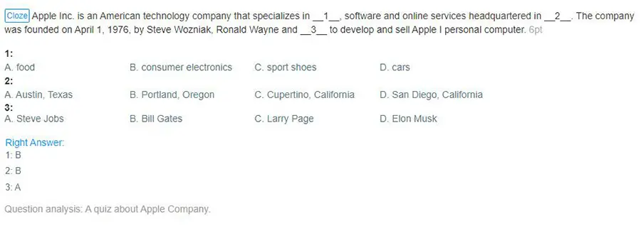 Cloze questions allow exam organizers to assess learners with a series of multiple-choice questions.