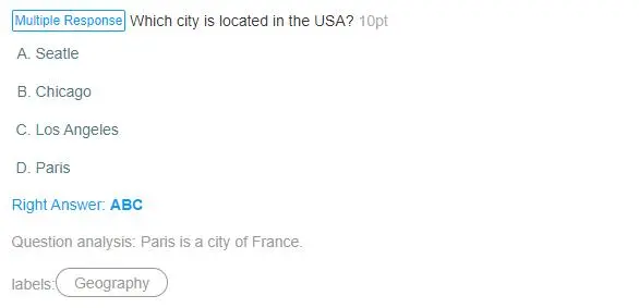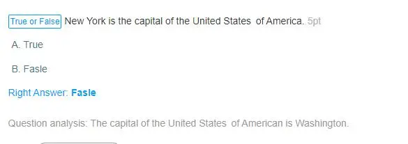 You can create a question for students that is a true or false answer. This type of question allows students to answer questions by selecting either the True option or a False option during the exam. You can custom the options of "True or False" with "Yes or No", "Right or Wrong", etc.