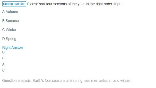Sorting questions allow exam takers to rank the question options in the correct order.